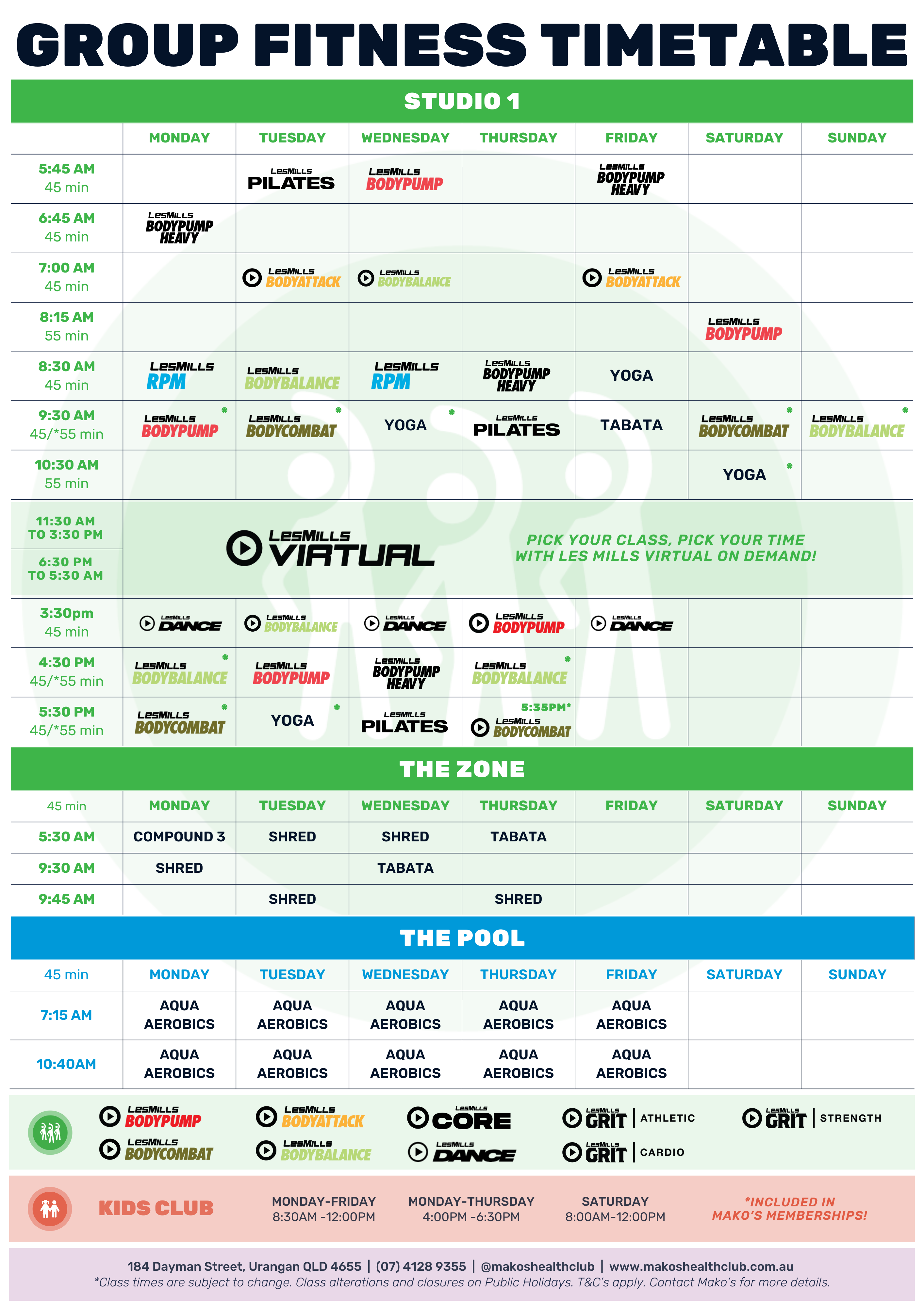 Timetable is subject to change due to public holidays, please check out our Facebook Page for updates.